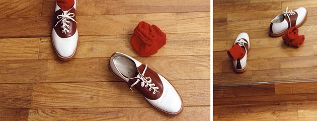 窺視皮鞋和牛仔褲間的紅襪-在每天的穿著中玩出一點小變化。
